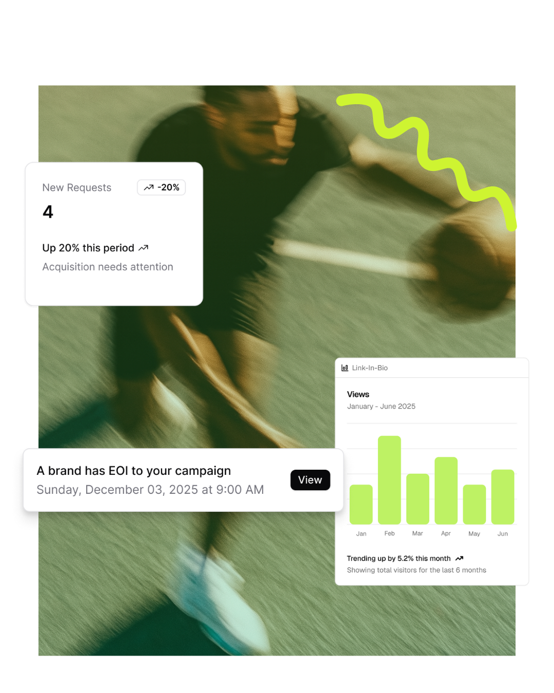 Receive brand leads and pitch athletes to campaigns, increasing visibility and deal volume.